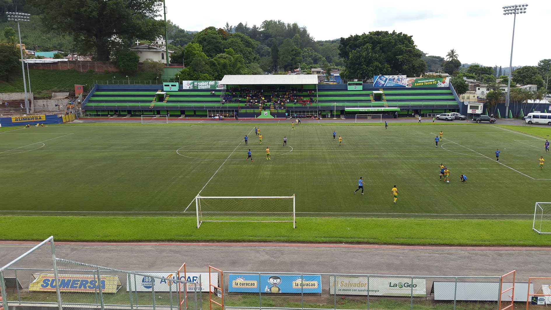 Es Sede del equipo de primera división de la Liga Mayor de Fútbol de El Salvador “Santa Tecla Fútbol Club” tiene una capacidad en sus graderíos para 9,000 aficionados, cuenta con: pista de patinaje, camerinos, torres de iluminación, cancha con césped artificial, baños, tablero marcador, estacionamiento. Siendo el estadio uno de los mejores del país para disfrutar de buenos partidos.